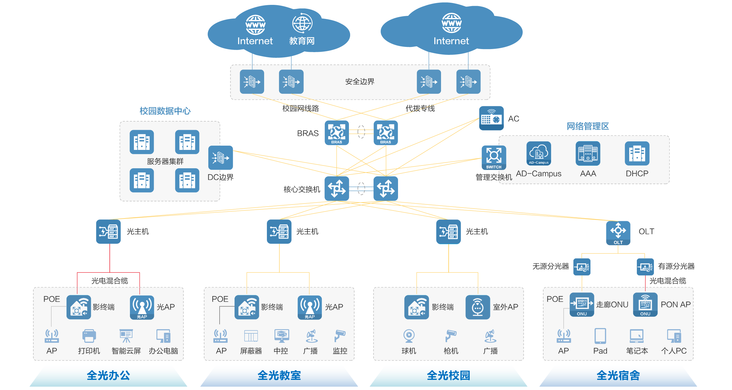 教學(xué)區(qū)、辦公區(qū)、宿舍區(qū)的網(wǎng)絡(luò)需求各異,需精細(xì)化匹配